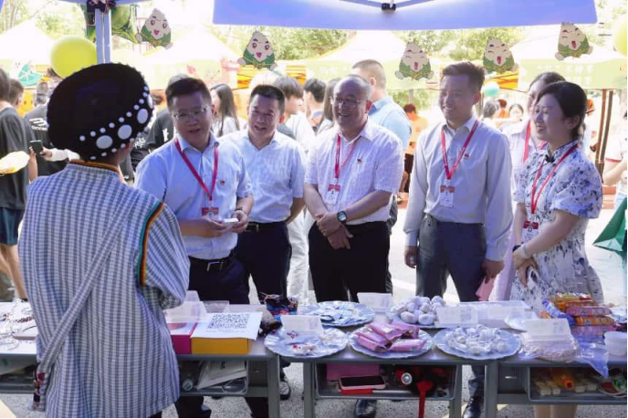 活动现场,由红石榴班少数民族学生精心布置的美食展台格外引人注目。香脆可口的傣族米花、金黄酥脆的满族沙琪玛、奶香四溢的哈萨克族奶皮酥、醇厚浓郁的蒙古族奶皮子、清香扑鼻的苗族茶饼酥、甜而不腻的波波糖……二十余种特色美食琳琅满目,令人目不暇接。大家一边品尝,一边交流着对不同民族美食的感受,欢声笑语回荡在活动现场。来自苗族的王同学一边分享家乡的茶饼酥,一边介绍:“这些食物承载着我们民族的记忆,今天能和大家分享,特别有意义。”在端午这个传统节日里,同学们通过美食,拉近了与各民族文化的距离,让民族团结之花在舌尖绽放,于心间扎根。