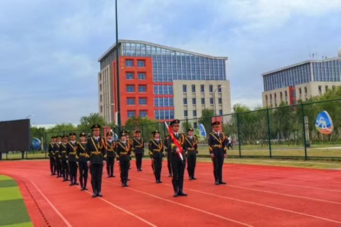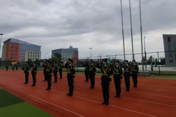 庄严肃穆启新篇,仪式感中显担当。仪式在协会成员整齐划一的入场中开启,随着《中华人民共和国国歌》的激昂旋律响起,全体人员肃立致敬,鲜艳的五星红旗冉冉升起。随后,全体队员进行队列展示——标准的军姿、整齐的步伐、刚劲的转体,每一个动作都彰显着国防教育协会平日里严苛训练的成果,展现出 纪律严明、作风优良的精神风貌。