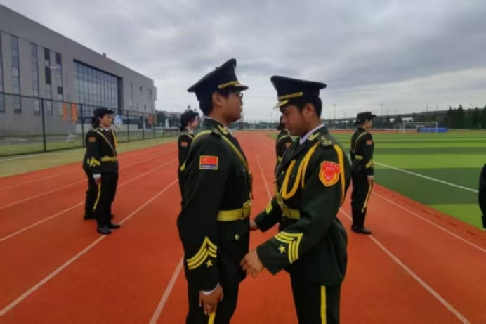 换届仪式现场,军乐声缓缓流淌,老队员们迈着稳健的步伐走向新队员。他们为新队员整理军装领口、抚平褶皱,调整肩章位置。眼神中满是殷切期许,将传承的使命与信念,随着这一庄重的动作,悄然传递给朝气蓬勃的新力量。