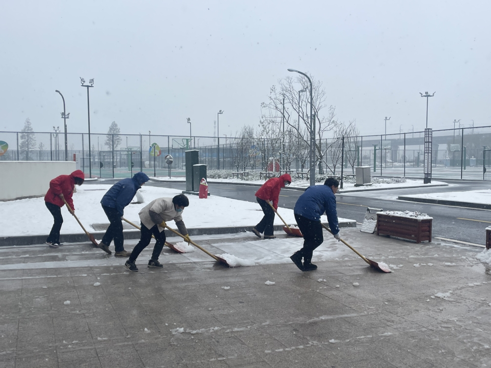 今日,高淳迎来了入冬的第一场大规模降雪,绿意盎然的校园转瞬银装素裹。为确保校园内道路通行畅通,师生出行安全,东吴物业迅速组织好扫雪队伍,发放扫雪工具,全力开展清冰除雪工作。