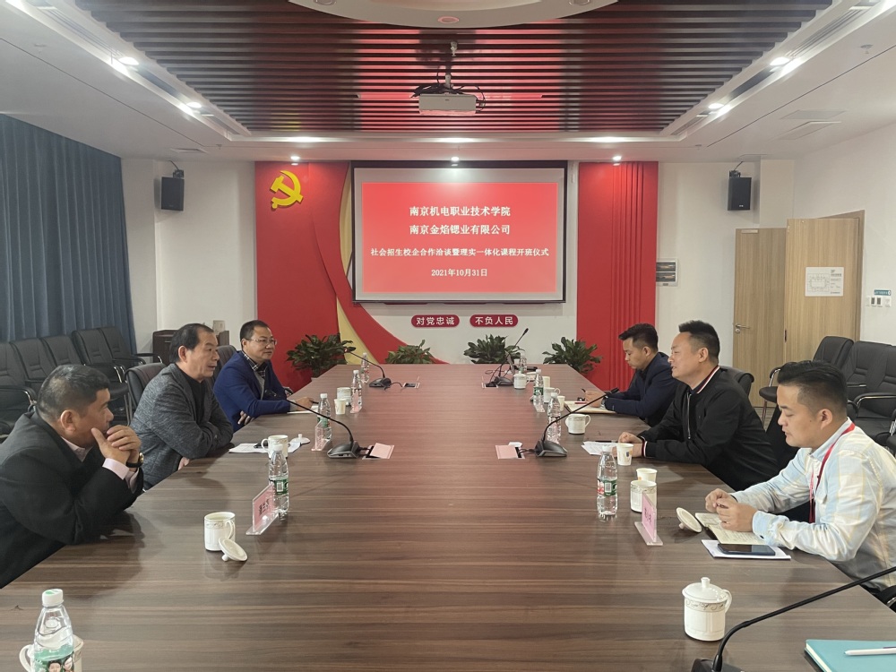 10月31日上午,我院与南京金焰锶业有限公司社会招生校企合作洽谈暨理实一体化课程开班仪式在育德楼311会议室举行。党委委员、副院长孔德丽、继续教育学院副院长姚小冬、自动化工程系副书记高水冕、南京金焰锶业董事长邱为农、办公室主任邱华、人力资源部主任潘兰亭、我院授课教师蔡可义和企业辅导员张书苗参加开班仪式。仪式由姚小冬副院长主持。