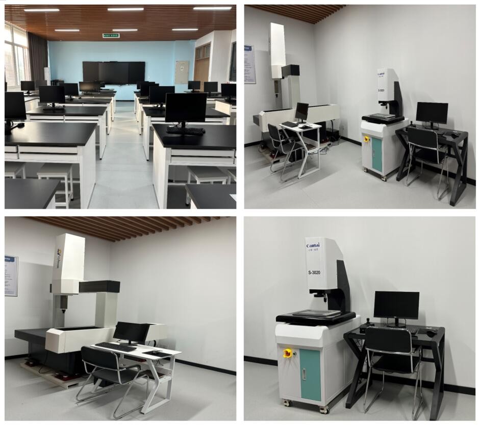 数字化检测中心专注于精密测量技术的教学与实践,配备了测量工具、三坐标测量仪和光学测量仪等精密设备。测量工具种类齐全,能够满足各种零部件的测量需求,帮助学生掌握测量的基本方法和技巧。三坐标测量仪是一种高精度的测量设备,能够实现对零件的三维尺寸和形位公差的精确测量,提高测量精度和效率。光学测量仪则利用光学原理对产品的尺寸公差和形位公差等进行测量,具有非接触、测量速度快、精度高等优点。通过本实训室的实践操作,学生能够深入理解公差配合的基本原理和实际应用,掌握各种测量技术和设备的操作方法,提高解决实际问题的能力。