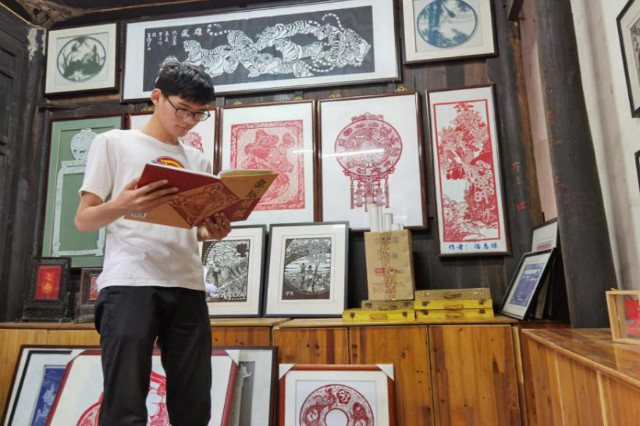 众所周知,金坛刻纸2009年入选“人类非物质文化遗产代表性名录”,成为了名副其实的世界级非遗。8月17日,朱倩老师带着学生们来到了金坛刻纸研究中心,在瞻仰了大师们的佳作之后,馆内工作人员王老师向团队成员详细讲解了刻纸的技艺特点,实践出真知,在听完老师的讲解之后,团队成员悉心体验了两天刻纸技艺,在反复的练习和摸索中,学生们逐渐掌握了一些技巧,比如:刀口不宜过长;刀口与纸的角度要尽量小;施力要慢且均匀等。在实践中,学生们感受到了传统艺术的魅力,并从自己的实践作品中获得了满满的成就感。