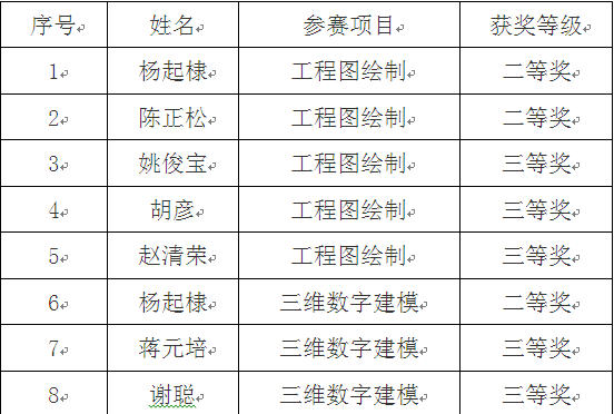 我院机械工程学院在校学生组成的代表队在老师的指导下参加了此次比赛,在与众多本科、专科与高职院校的激烈角逐中获得“工程图绘制”及“三维数字建模”个人奖二等奖3项、三等奖5项的好成绩。