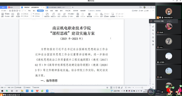 为贯彻落实习近平总书记在全国高校思想政治工作会议和在全国宣传思想工作会议重要讲话精神,进一步推动《高校思想政治工作质量提升工程实施纲要》和《高等学校课程思政建设指导纲要》等文件精神落地实施,结合学院工作实际,学院制定了《幻影网页版登录入口_幻影(中国)“课程思政”建设实施方案》。2022年3月22日下午,机械设计与制造教研室在腾讯会议线上平台对学院的文件进行了学习,并对本专业的所有课程融入思政进行了研讨,会议由专业负责人黄晓萍主持。