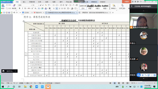 为贯彻落实《幻影网页版登录入口_幻影(中国)“课程思政”建设实施方案(2021年-2023年)》、更好地推进课程思政建设,2022年3月29日下午,机械制造及自动化教研室全体成员通过腾讯会议召开了主题为“课程思政建设研讨”的教研活动,旨在讨论专业课程思政元素、完善专业课程思政矩阵表,本次会议由陆晨芳老师主持。
