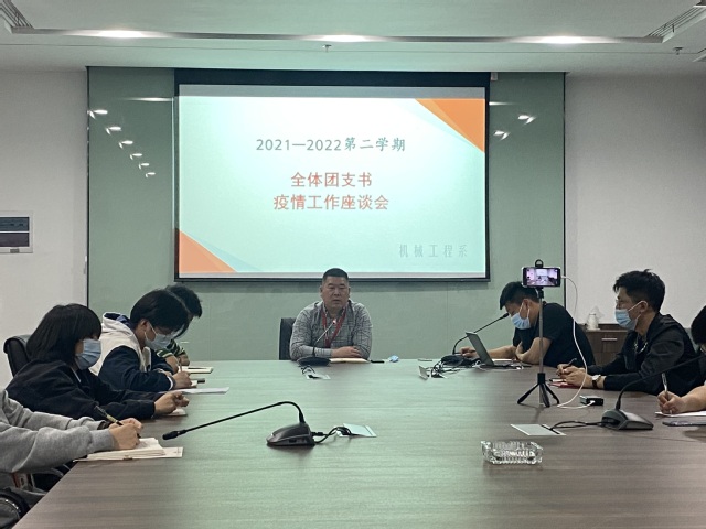 为响应南京市疫情防控要求,幻影网页版登录入口_幻影(中国)实行全封闭式管理,实施线上教学模式。机械工程系积极响应学院的号召,实行教师加班长、团支书的双战线模式,积极保障封闭期间同学们的身心健康,提高同学们生活和学习的质量。2022年4月19日晚21点在育德楼203会议室召开机械工程系团总支(团支书扩大会)座谈会。会议由党支部书记李杰主持,学工干事顾航、团总支书记沈婷婷、团总支副书记李华润、团总支各部门部长及团支书参会。