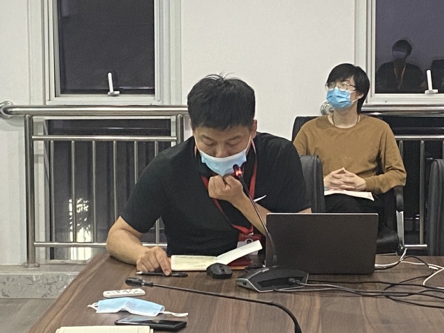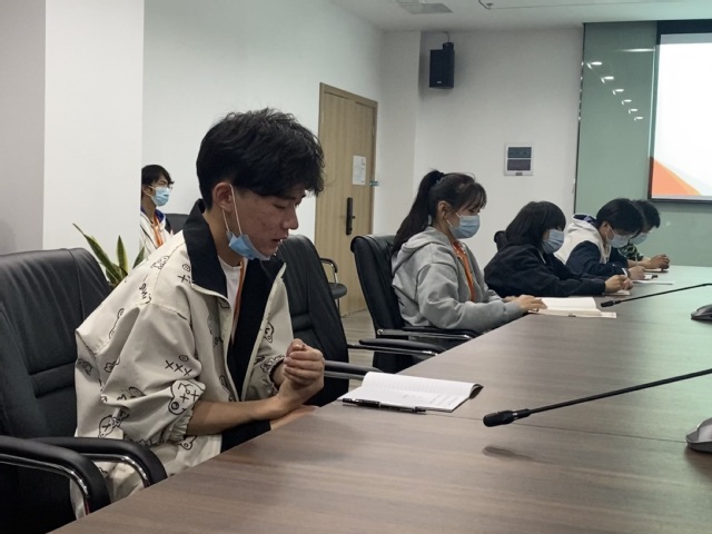 会议正式开始前,由学工干事顾航通报最近封闭管理期间宿舍卫生问题、线上上课出勤问题等。