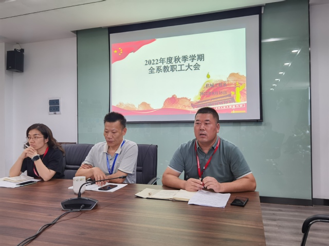 李书记就新学期系部的重点工作从党建工作、安全工作、专业建设、培训工作、学生工作、招生工作、两大战略等七个方面进行了安排部署。他强调党的二十大召开在即,全体教职工一定要提高政治站位,加强政治敏锐性教育。在日常工作学习中,积极开展喜迎“二十大”系列活动,同时也要落实好学院党委工作,从严治党、加强意识形态教育、党风廉政建设教育,守牢意识形态主阵地。学生是基石,教育工作者要注重日常的学习,立德树人,做好新学期的规划与发展。