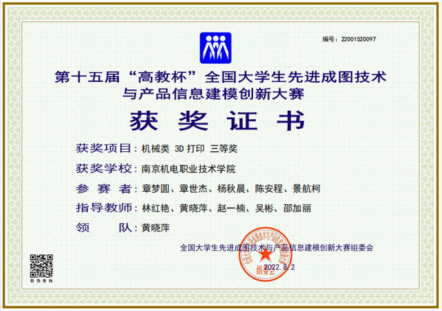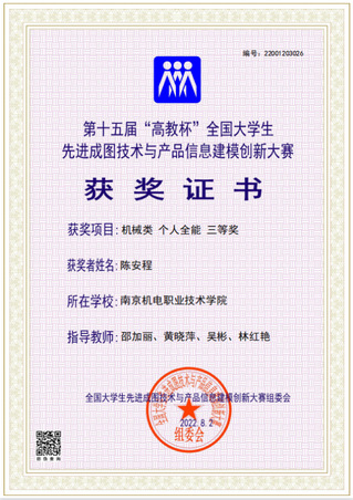 经过激烈角逐,我院机械工程系林红艳等老师带领的杨秋晨、陈安程、景航柯、章世杰、章梦圆五名同学组成的团队获得机械类团体三等奖1项,杨秋晨同学获得个人全能二等奖1项,陈安程同学获得个人全能三等奖1项,以及3D打印三等奖1项的优异成绩。