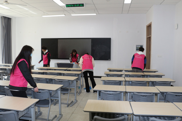 活动中,志愿者们身着统一服装,携带劳动工具,对博学楼各教室进行了卫生打扫。相互配合、紧密协作,认真仔细地对教室内的纸屑、塑料袋等杂物进行清扫,将桌椅排列整齐。大家洋溢着青春活力的忙碌身影成为教学楼一道亮丽风景线,充分展现出昂扬的精神状态和奋斗姿态,有效发挥了团青年的青春正能量。