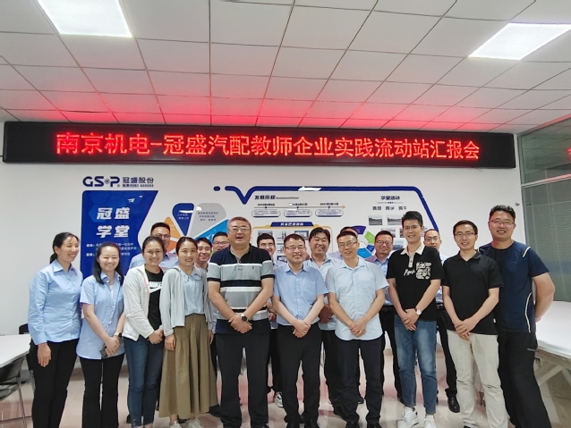 为贯彻落实《国家职业教育改革实施方案》以及教育部等九部委印发的《职业教育提质培优行动计划(2020—2023)》,强化高素质“双师型”教师队伍建设,检验教师企业实践流动站前期项目实践成果与推进下阶段项目实践计划,提升教师实践能力和创新能力,2023年6月16日,学校党委委员、副院长刁爱军,科研及校企合作处处长李木香,机械工程系主任毛奇,党支部书记李杰及“南京机电-冠盛汽配教师企业实践流动站”部分教师前往南京冠盛汽配有限公司开展实践项目复盘活动,冠盛公司总经理侯廷锋、OE事业部经理胡锦锋、人力资源部经理邵晗以及各项目组工程师参加此次流动站复盘活动。