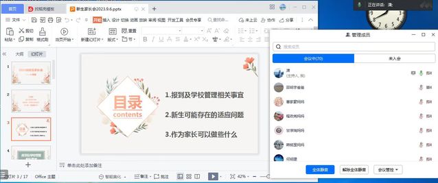 参会过程中,辅导员们为家长们提供了学生教育方面的帮助,明确了家校携手的合作方向,全体家长也认真学习,积极参与,用心感受,虽然是“云上相聚”,但是隔着屏幕依然可以感受到家长朋友们的热情,各班家长参会率都在90%以上。
