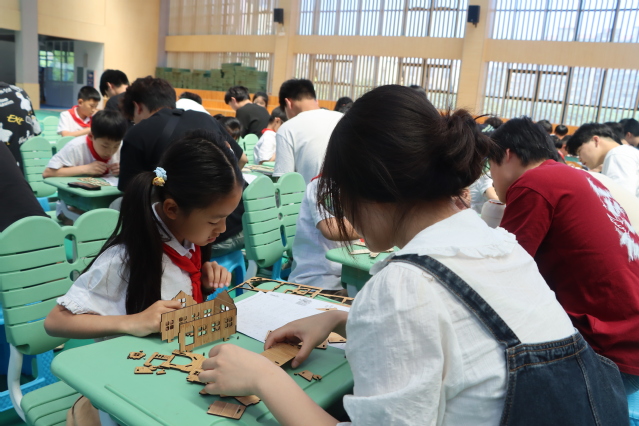 活动伊始,王晨歌向小学生们介绍了激光切割原理和创客文化的精神。随后,机械工程系学生干部们一对一地指导小学生如何从零开始,利用简单的材料制作出属于自己的创客作品。在这个过程中,小学生们的创意得到了充分的发挥,他们设计了各式各样的模型和小发明,从简单的齿轮结构到复杂的小型机器人,每一个作品都充满了想象力。