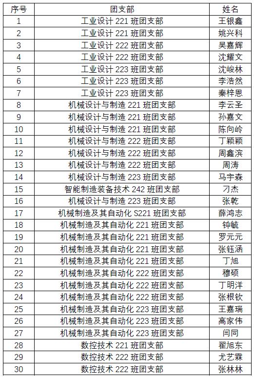 根据校团委《关于做好2024年度团员教育评议及团籍注册的通知》,机械工程系积极组织各团支部开展团员教育评议工作。经过各支部组织团员自评、民主评议、支委会议讨论,辅导员指导审核,系团委统计复核,现将2024年度团员教育评议“优秀”名单公示如下: