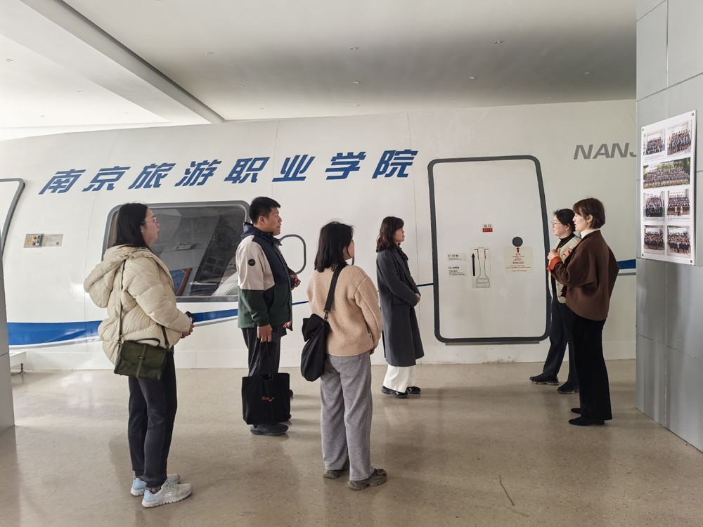 会后,机械工程系一行实地参观了旅游管理学院党建文化长廊、学生创新创业实践基地。随后,交流团队重点考察了旅游管理学院的实训教学设施,包括航空模拟舱模拟实训室、中西餐烹饪实践基地等。学院教师现场介绍智能化教学设备赋能实践课程,展现了“教、学、做”一体化的职教特色。学院将行业标准融入实训环节的创新思路,为机械工程系优化实践教学体系提供了宝贵借鉴。
