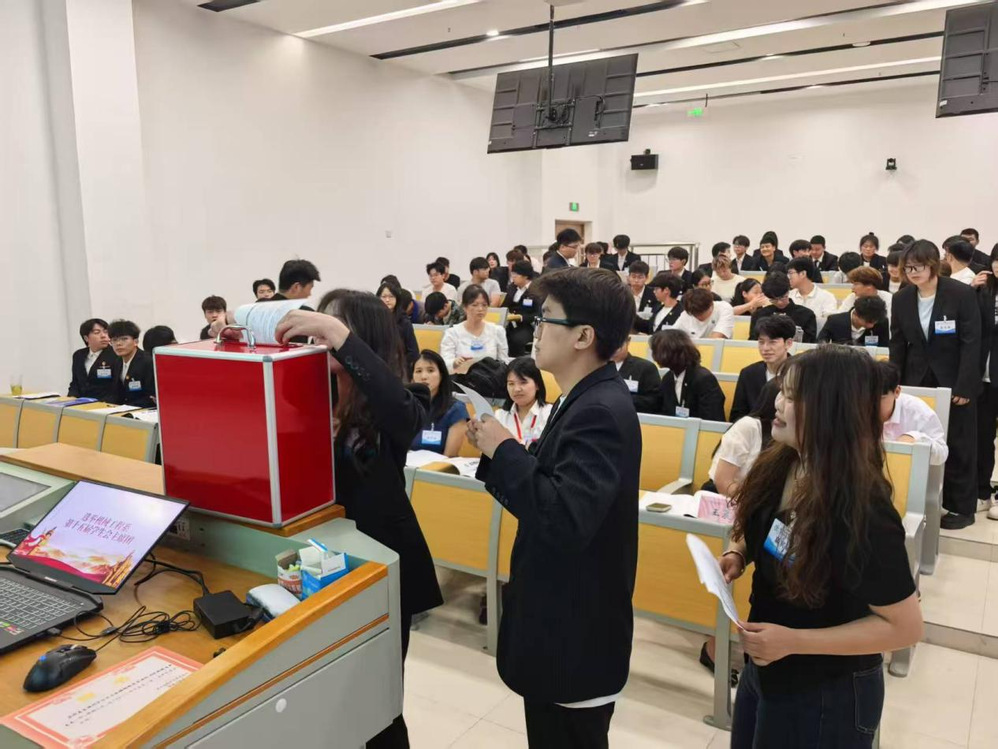 随后,大会步入投票选举阶段,现场秩序井然。代表们依次走上讲台进行投票,通过差额选举的方式,6名候选人中孟浏、汪翔、陈文聪同学脱颖而出,成为幻影网页版登录入口_幻影(中国)机械工程系第十五届学生主席团成员。