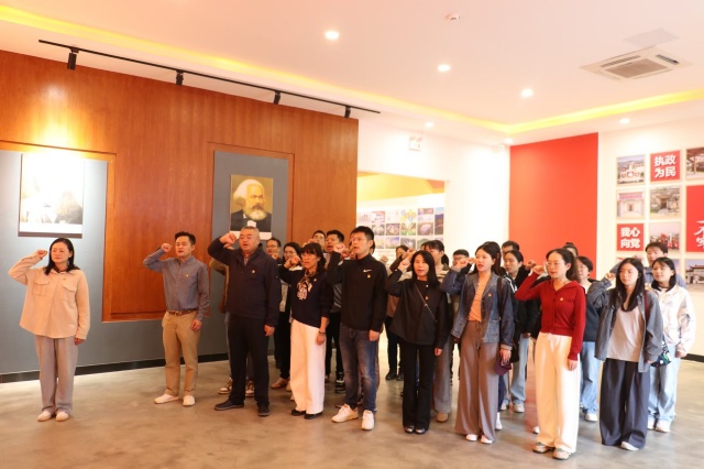 随后,全体党员怀着崇敬的心情参观了国防园的“四馆一园”中的部分展馆。党史国史馆以宏大叙事勾勒出中国共产党带领人民不懈奋斗的历史画卷;在国防教育馆,一幅幅珍贵图片、一件件实物装备,系统展示了我国国防建设从无到有、从弱到强的辉煌历程;参观结束后,全体党员列队整齐,面向鲜红党旗,举起右拳,在电子工程系党支部书记叶绘的带领下庄严重温入党誓词,铿锵誓言格外清晰响亮,也让这一刻的初心使命更加纯粹坚定。