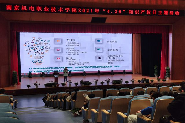 高淳区市场监督管理局知识产权科科长周小玲、副科长杨田,高淳经济开发区科技人才局科长孙少俊,学院党委副书记、纪委书记、副院长陈赵、科研及校企合作处处长李木香、自动化工程系主任范世祥、机械工程系主任佟静、人文社科系主任曹安林、各系专利工作负责人、优秀专利发明人代表,高淳区8家企业代表和学校600名学生参与了活动。