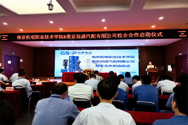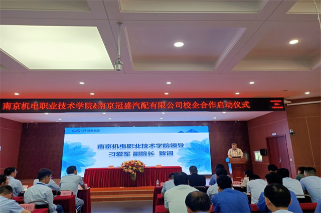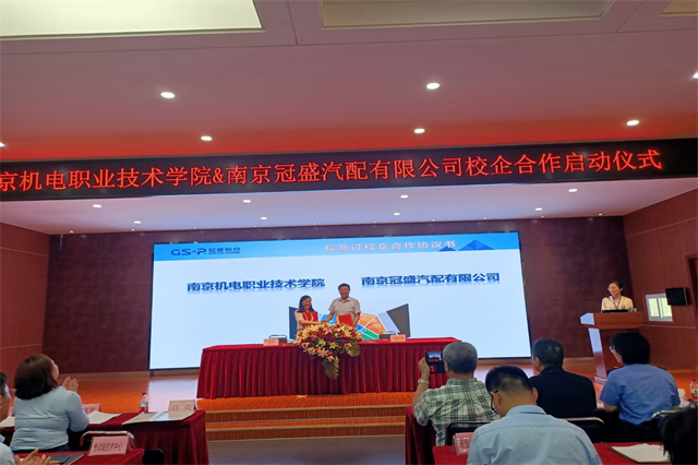 5月31日下午,幻影网页版登录入口_幻影(中国)与南京冠盛汽配有限公司校企共建知识产权战略合作签约授牌仪式高淳经济开发区科技人才局副局长倪友谊、幻影网页版登录入口_幻影(中国)副院长刁爱军、南京冠盛汽配有限公司总裁办主任许炎等领导出席活动,南京机电学院相关部门负责人及南京冠盛汽配公司技术人员等60余人参加活动。