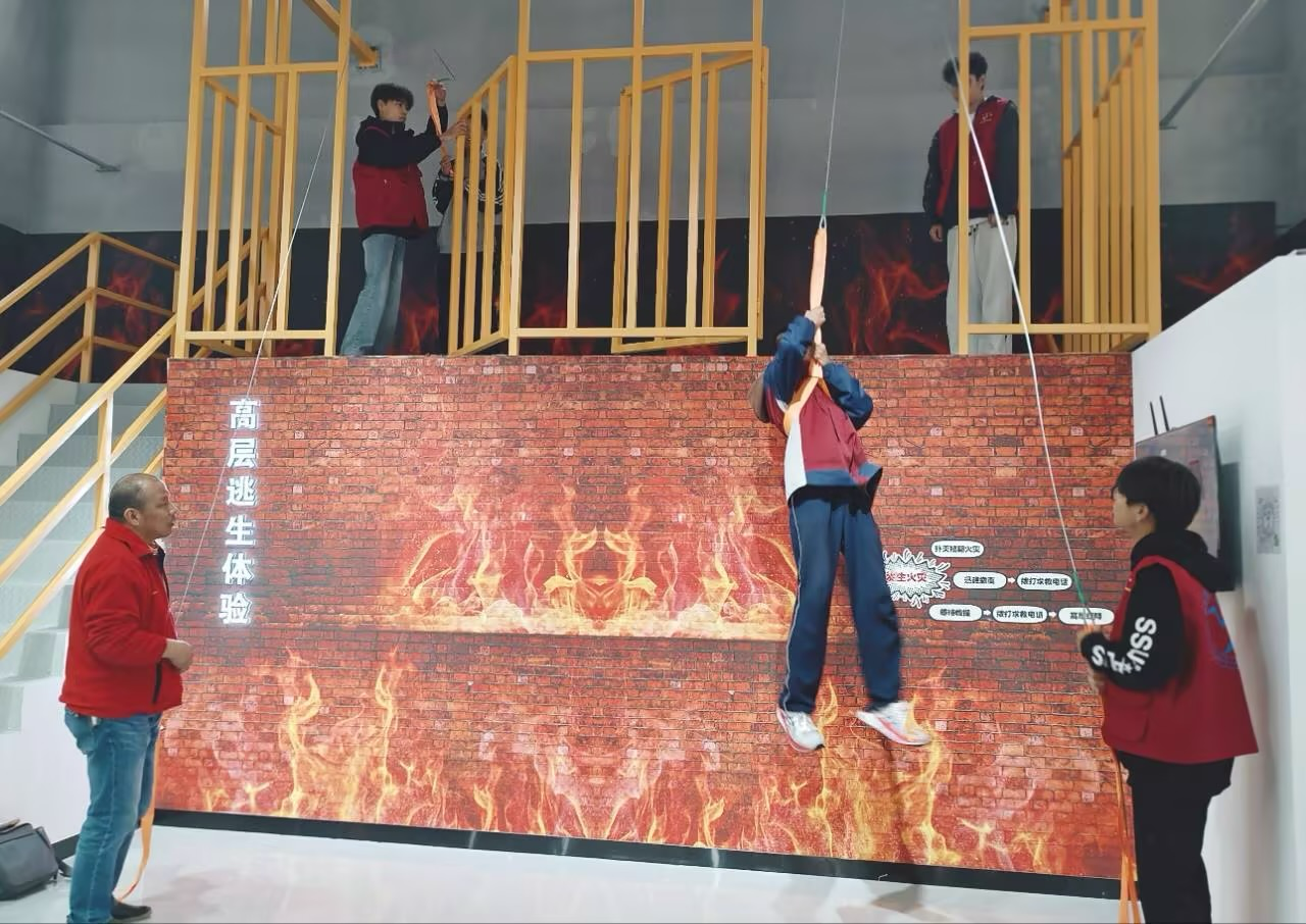 在安全应急教育体验中心,同学们认真聆听了我校保卫处尹小雨老师关于安全应急教育的讲解,并在教师指导下模拟体验了包括高层逃生体验、人体触电等安全体验项目,增强了安全意识和应急处理能力。