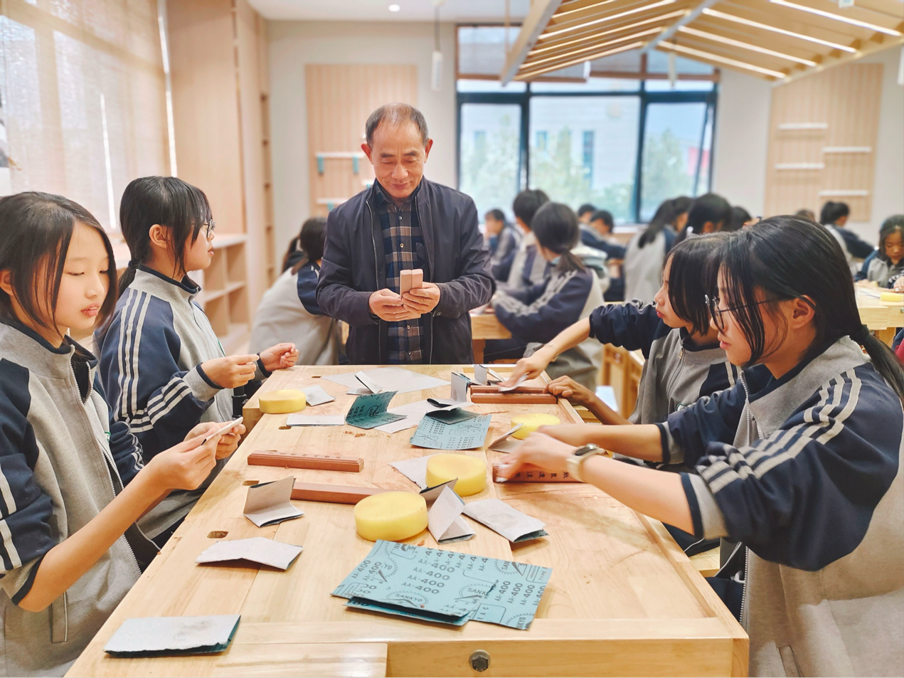 在非遗传统文化传承与创新工坊,南通板鹞风筝工坊代表性人物何金泉,江苏省工艺美术名人、非遗传承人夏元安,学校人文社科系教师张萌分别为同学们带来南通板鹞风筝、精细木作技艺、非遗锦灰堆文创制作等非遗项目体验活动。同学们充分体验了从创意构思到制成成品的全过程,深刻感受到非遗传统文化带来的无限乐趣。