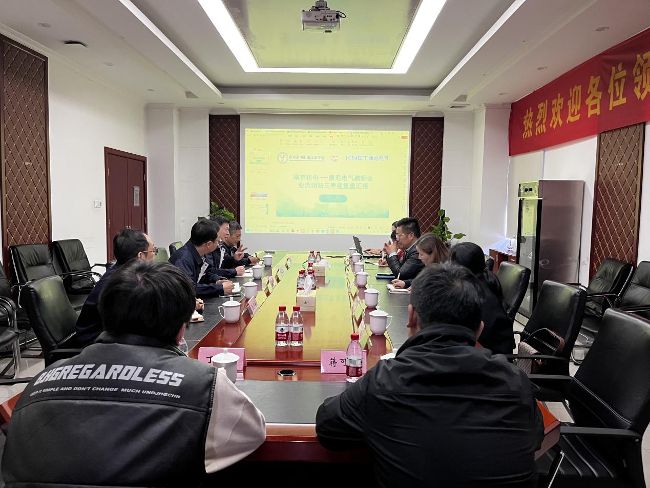 2025年11月12日,南京机电—康尼电气教师企业流动站第三季度复盘交流会在南京康尼电气技术有限公司顺利召开。康尼电气技术有限公司总经理马涛、副总经理刘蔚钊,企业导师李向阳、张中辉,学校党委书记、校长周庆礼,科研及校企合作处处长李木香、自动化工程系主任张海红等领导出席会议。流动站负责人袁芬及进站教师一同参加交流。会上,校企双方围绕教学资源共建、产学研项目协同推进、科研成果转化以及下阶段发展规划等内容展开了深入交流,全面总结了前期合作成效,为下一步深化校企协同育人机制与技术联合创新指明了方向。