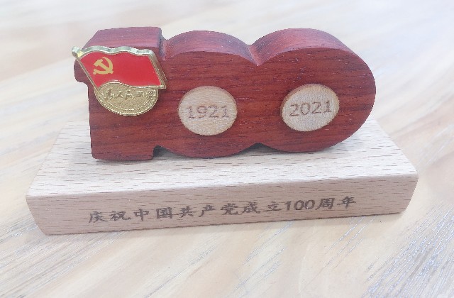 本次活动由学校党委主办,蓝岛创客空间承办。庆祝中国共产党成立100周年摆件由红木构成,镶嵌党徽。制作过程首先要用磨砂纸对底座和主体进行打磨。