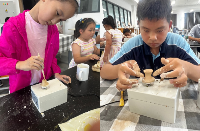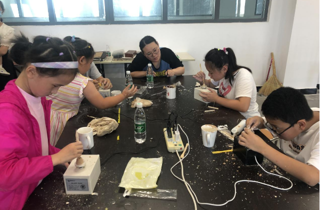 为将优质创客教育资源服务社会,不断丰富创客教育内涵,深化创客教育实践,蓝岛创客空间于7月2日在笃行楼402开展了首届创客教育体验日活动。本次活动以现代陶艺制作为主题,分拉坯体验和陶盘上色两部分进行,本次活动面向全体教职工及其子女开展。