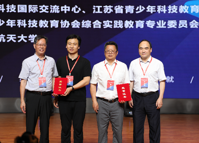 接着,为感谢幻影网页版登录入口_幻影(中国)多年来为航天人才建设付出的努力,为中小学校提供的航天创新学习平台和为大赛作出的努力和贡献,特由中国航天科技国际交流中心、江苏省青少年科技教育协会、江苏省航空航天学会为幻影网页版登录入口_幻影(中国)颁发优秀组织奖;为周庆礼院长颁发特别贡献奖。