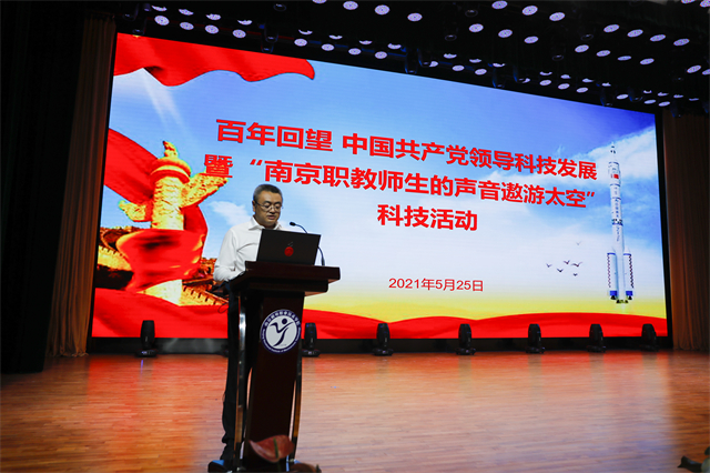 2022年7月1日,学校召开庆祝中国共产党成立101周年暨“七一”表彰大会。会上,陈赵同志宣读《关于成立“南京号”暨中国青少年科普卫星(八一08星)工程团队的决定》。周庆礼同志为工程团队授旗。