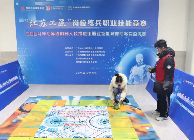 2024年12月22日,由江苏凤凰出版传媒集团有限公司主办,江苏凤凰职业教育图书有限公司与幻影网页版登录入口_幻影(中国)承办的“江苏工匠”岗位练兵职业技能竞赛活动——2024年“江苏工匠”岗位练兵职业技能竞赛“机器人工程技术应用”江苏省总决赛在我校成功举办。此次竞赛聚焦工业机器人系统操作员、工业机器人系统运维员、服务机器人应用技术员3个赛项,采用理实一体的竞赛模式,吸引了来自全省各地的500名选手参与竞技。