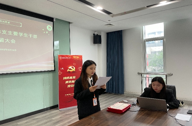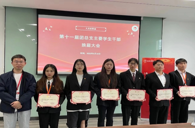 会上,人文社科系团总支第十届委员会副书记李家芬同学作学年工作总结报告,她从思想政治、组织建设、社会实践和取得成效等方面向大会作了详细报告,对学生干部一年来的努力和贡献给予了肯定。朱俐同学宣读了新一届团总支学生干部名单。视觉传达设计222班韩贻超同学代表新一届团总支委员会进行了就职演讲,表示在今后的工作中,新一届学生干部将全心全意为同学们服务,继续发扬艰苦奋斗、顽强拼搏的精神,为开展好学生工作贡献力量。