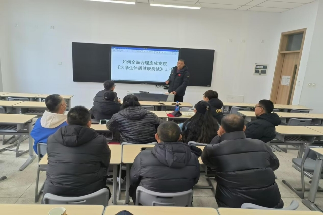 20231226日下午,体育教研室在博学楼105开展如何全面合理完成我校《大学生体质健康测试》工作的研讨会,会议由李庆路老师主持。
