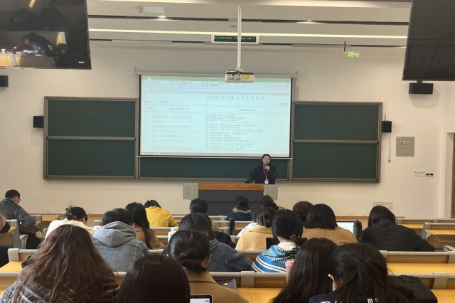 随后,人文社科系党支部副书记叶绘对本学期的工作学习任务进行了详细部署。她围绕着思想政治工作、“五味”特色党建项目、专业内涵建设、课程建设、师资队伍建设、人才培养质量、安全工作、就业工作等内容进行详细介绍,号召全体师生要统一思想,凝聚共识,以更加饱满的热情和更加务实的作风,推动人文社科系工作再上新台阶。