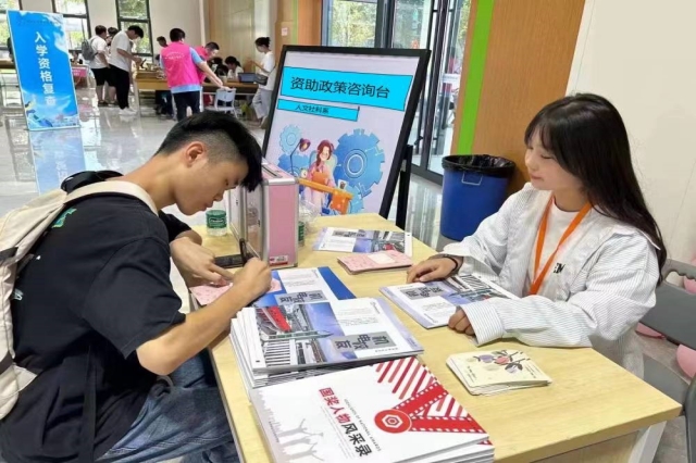 为进一步做好2023级新生入学时的高校学生资助政策宣传工作,我系自行设计了资助政策咨询台展板,资助大使现场给前来咨询的学生进行答疑解惑,帮其更好地了解高校资助政策。各班辅导员提醒报到的新生务必要增强防范电信网络诈骗的意识,不要掉入诈骗分子的圈套。