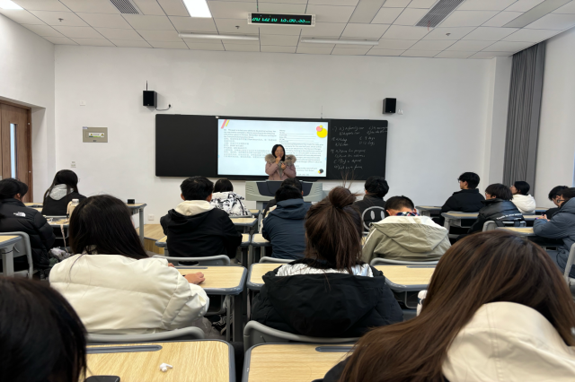 为落实教育部《高职高专教育英语课程教学基本要求》,提高我校高等学校英语应用能力考试(简称三级半)通过率,帮助考生熟悉考试节奏,减轻考前焦虑,克服备考过程中的困惑,英语第二课堂“蓝岛英”英语角于2024年12月10日在善学楼209举办了英语备考冲刺指导交流会。