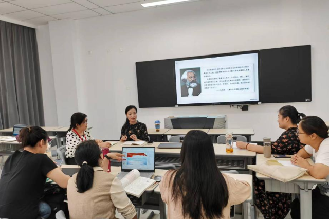 2024年9月30日下午,思政中心在博学楼107开展本学期第四周教研会,会议以《思想道德与法治》课程绪论部分专题教学为例,进行教学改进研讨,本次教研会由许青娟老师主持。