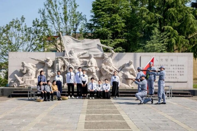 原创话剧《东进!东进!东进!》以新四军东进北上的真实历史为蓝本,生动再现了革命先辈在这片土地上的英勇事迹。演出中,军民相依,团结一心的革命精神通过师生们真挚的表演得以鲜活呈现,深深打动了现场观众。“看到剧中百姓送烧饼给新四军战士的场景,仿佛穿越回了那个战火纷飞的年代。”西舍村老党员激动地说。演出结束后,不少观众仍沉浸在剧情中,有学生感慨:“站在革命先辈战斗过的地方看这部话剧,比任何教科书都更让人震撼。”
