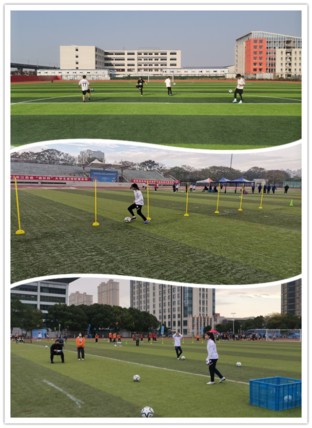 大学生足球教学成果暨体能比赛是江苏省学生体协高校工作委员会和江苏省高职高专院校体育教学指导委员会主办,是检验全省高校体育教学成果的一项传统赛事,集足球技术和体能与一体,全面展示高校体育教学成果和学生体能水平状况,是技术、技能与能力的交流。足球比赛项目有颠球、踢准、绕杆射门和定点射门四项,体能比赛内容有三级蛙跳、仰卧起坐(女)、引体向上(男)、2000米跑(女)、2400米跑(男)三项。