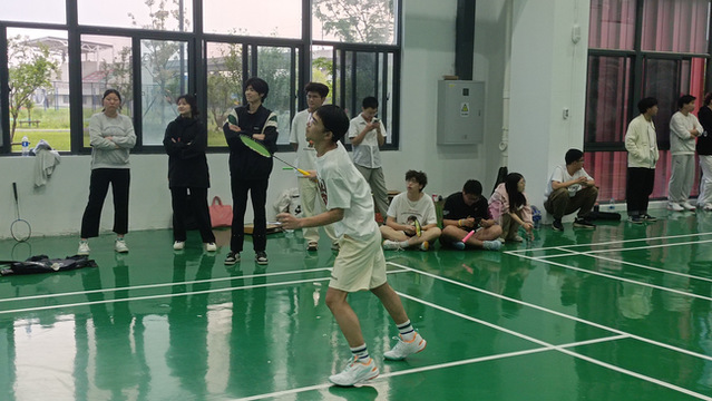 一场期待已久的羽毛球比赛如火如荼地开展,选手们热血沸腾,馆内气氛高涨。这场赛事不仅展现了我校学子们积极向上、奋勇拼搏的精神风貌,更以体育比赛为纽带,拉近了系部之间的亲密度。