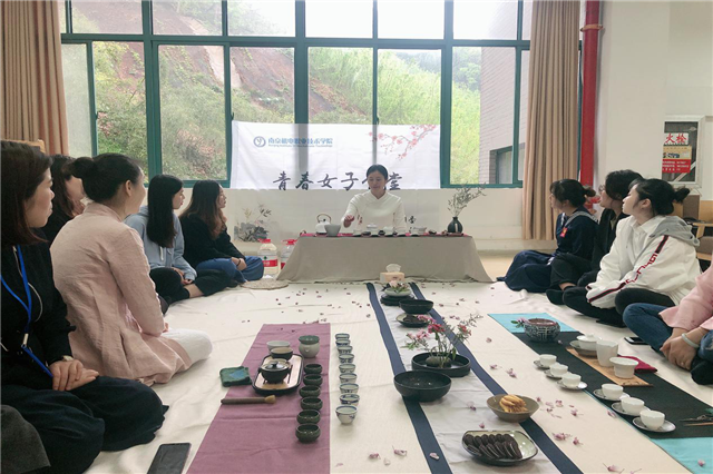 2019年4月9日下午,由青春子学堂社团主办的“观茶艺,触茶道,悟人生”活动在本校的蓝岛书院拉开了帷幕,参与这次活动的有人文社科系老师、青春女子学堂全体成员、礼仪社社长、副社长。这次活动有幸请到了哈尼族普洱茶第三代传人彭晓金老师,彭老师是国家高级茶艺师、审评师,也是商茶文化的倡导者之一。此次活动展现了我们学校丰富多彩的校园生活,陶冶同学们的文化修养内涵,弘扬我国优良传统文化,也让我们在茶道中感悟人生。