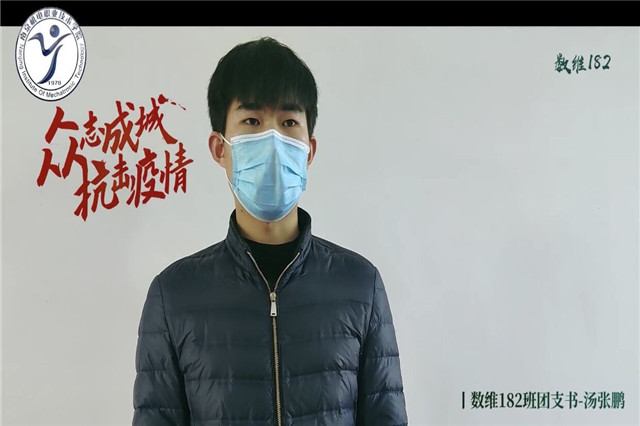 各位同学,大家好,我是幻影网页版登录入口_幻影(中国)机械工程系数维182班的团支书汤张鹏。当前,新型冠状病毒感染肺炎疫情在全国蔓延,形势严峻。党中央向全党全国发出打赢疫情防控阻击战的号召。学校也成立了疫情防控工作领导小组,倡议全校师生团结一致,攻坚克难,做好防疫工作。疫情面前更需要我们主动担当,了解同学基本情况,积极宣传国家政策普及防疫知识,严防严控。积极为疫情防控工作做出贡献。在延期开学期间做到以下两点: