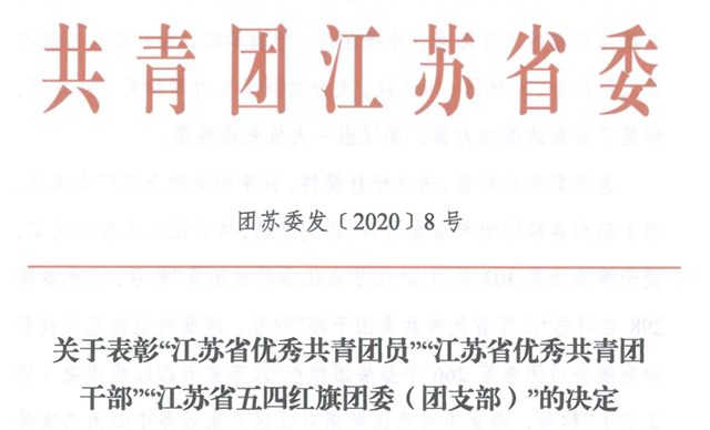 为表彰先进典型、树立标杆榜样,引导和激励全省广大团员、团干部和各级团组织奋发有为、再创佳绩,共青团江苏省委决定,授予我院杨军老师“江苏省优秀共青团干部——团支部书记专项”称号。