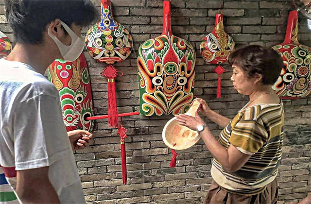 之后的一个礼拜,团队成员在手工工厂练习,每天都会向非遗传承人请教在过程中遇到的问题,同时调研团队成员与非遗传承人针对马勺脸谱创新的方面也进行了讨论,调研团队成员向非遗传承人提出有为建党一百周年做文创的想法,也得到了非遗传承人的认可。