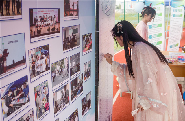 党委副书记、纪委书记陈赵宣布社团巡礼节开幕。本届社团巡礼节在原有社团展示的基础上,延续虚拟货币的流通,打造虚拟货币促进社团与社团之间的互动。参与一个社团摊位活动可获得一张专属虚拟货币卡,按集齐的种类数量可前往我们的兑奖处兑换礼品。此举,不仅激发了师生的社团活动参与率,而且促进了社团之前的交流,现场一派热火朝天的景象。与此同时,大学生资助管理中心将诚信教育与育人活动紧密结合起来。将“学党史、强信念、笃诚信、传薪火”的红色横幅宣传标语、“资助助我成长、我为资助代言”为主题的图片展、“筚路蓝缕、砥砺前行”的勉励字牌,现场资助知识竞赛、资助政策宣讲与社团巡礼节相结合,形式新颖、内容丰富,吸引了广大的学生驻足观赏、学习、点赞,更多元化方式的将资助工作深入学生的生活之中。