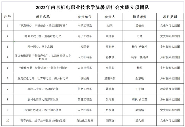 为深入学习宣传贯彻习近平新时代中国特色社会主义思想和党的十九届六中全会精神,贯彻落实习近平总书记关于青年工作的重要思想,深入学习习近平总书记在庆祝中国共产主义青年团成立100周年大会上的重要讲话精神,引导和帮助广大青年学生上好与现实相结合的“大思政课”,在社会课堂中“受教育、长才干、作贡献”,迎接党的二十大胜利召开,根据“三下乡”社会实践活动安排,经自主申报,各团总支、青马班审核推荐,校级专家评审,确定以下10个项目为2022年幻影网页版登录入口_幻影(中国)暑期社会实践重点立项项目,并对立项的校级重点项目进行经费支持,现公示如下: