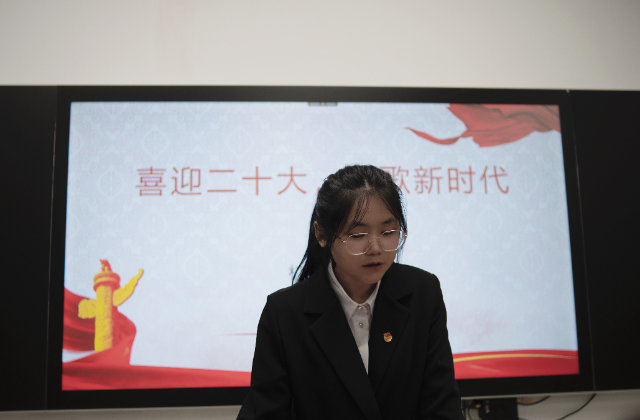 会议上,副书记王可仪精心准备,通过PPT展示、视频图片播放的形式,详细地介绍了党的二十大召开的意义以及党的二十大报告中的新观点、新论断、新思想。