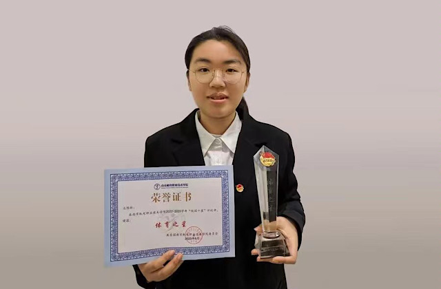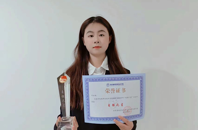 2021学年创新之星提名奖,“奋进新征程,青春勇担当”征文比赛二等奖,寒假“社会实践优秀个人”,“镜头里的诗词歌赋”优秀奖等。