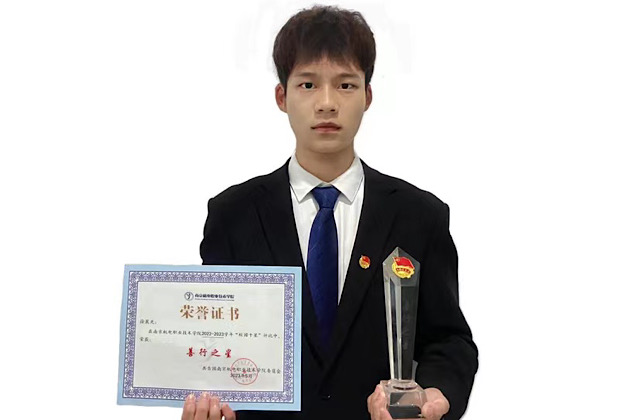 徐晨光,男,汉族、共青团员,毕业于湖北省荆州市洪湖市贺龙高级中学,来自信息工程系软件技术213班。现担任校团委助理、校团委宣传部副部长、班级副班长、团支部副书记、心理委员、墨客书法社社长、群星争鸣辩论社副社长、思齐苑301宿舍长。在校负责幻影网页版登录入口_幻影(中国)学工处微信公众号、幻影网页版登录入口_幻影(中国)官方抖音号运营工作。在幻影网页版登录入口_幻影(中国)学工处微信公众号打造【防疫锦囊】、【禁烟科普】、【学工周记】特色系列推文。【禁烟科普】系列推文的打造为我校师生的身体健康提供了可靠的理论支撑,拓展了我校健康教育的内涵,有力推动了校园精神文明建设。2022年度共参加校内为志愿服务60余次,累计服务时长超过500小时。